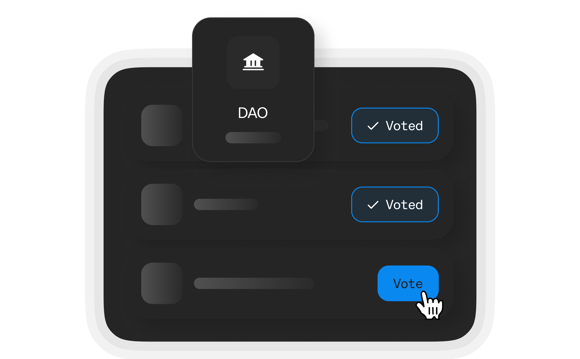 Support onchain and offchain governance, staking, and treasury actions while keeping assets under custody.